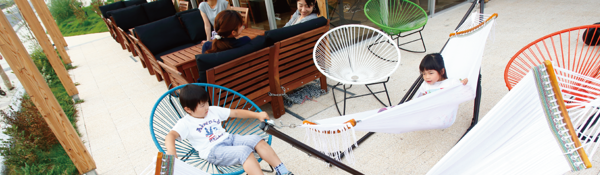 本格キャンプ用ドリッパーを使用し、お客様自身でカスタマイズ出来るグランピングコーヒードリップ体験や、テラス席で炭火を使用しての焼きマシュマロスモア体験(※要予約)、お子様は疲れたらテラスにあるハンモックで心地よい風を感じながらお昼寝♪親子で一緒にグリル焼き体験など、親子の絆をよりぎゅっと深める様々な体験をミートダッチでお楽しみ頂けます。お子様連れのママさんにも好評のお座敷席はちょっとした集まりにも最適です。