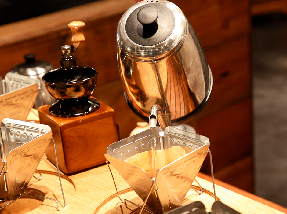コーヒー豆を自ら挽いて自分だけのオリジナルグランピングコーヒーが
